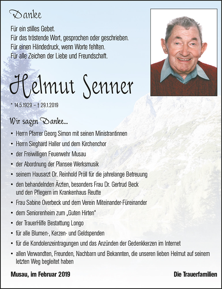 Kondolenzbuch für Helmut Senner