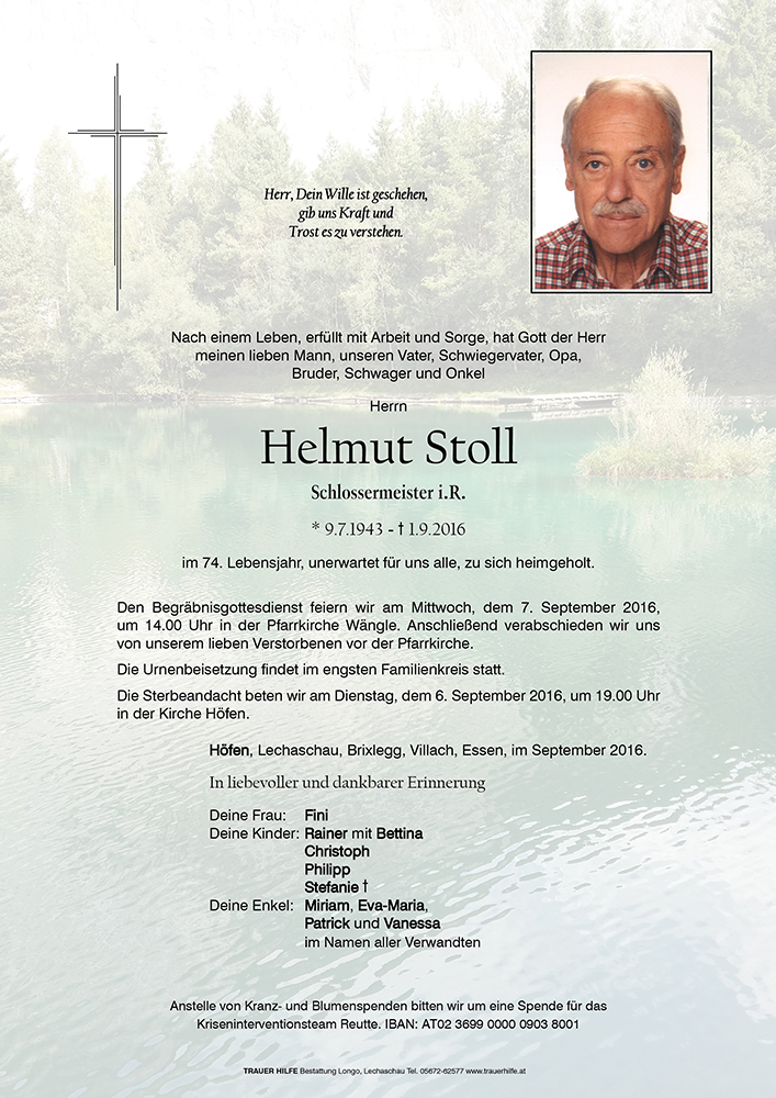Liebe Fini herzliche Anteilnahme in deiner schweren Stunde. Helmut ist uns nur vorausgegangen, erst wenn man ihn vergisst, ist er gestorben.
