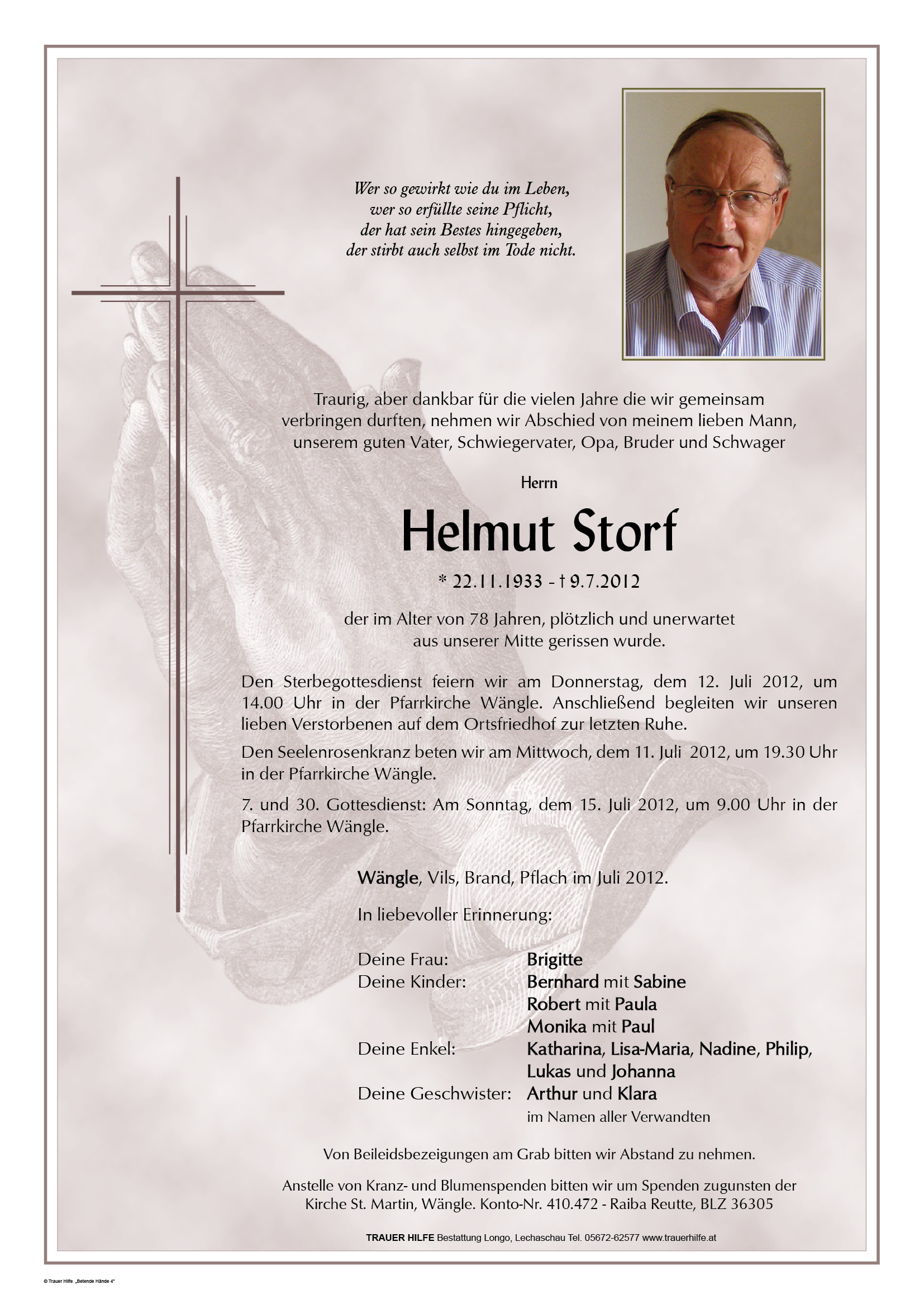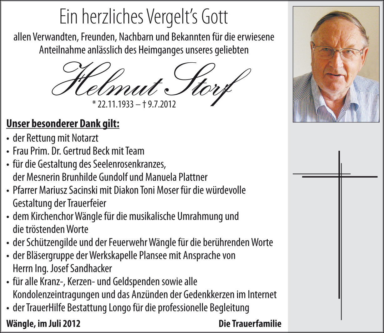 Kondolenzbuch für Helmut Storf
