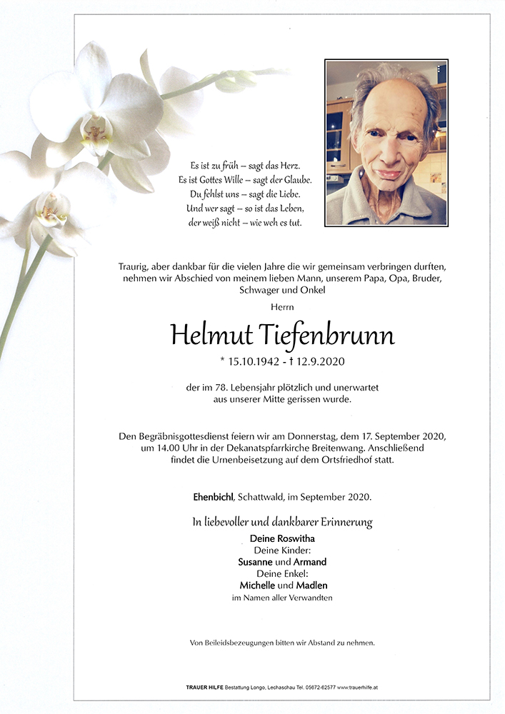 Möge euch diese Zeilen über den Verlust Eures Helmuts helfen.