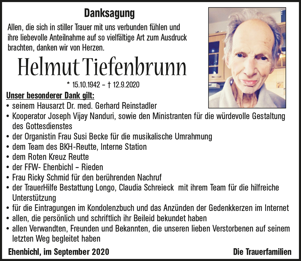 Zum Ableben von Helmut entbiete ich euch mein tiefes Mitgefühl.