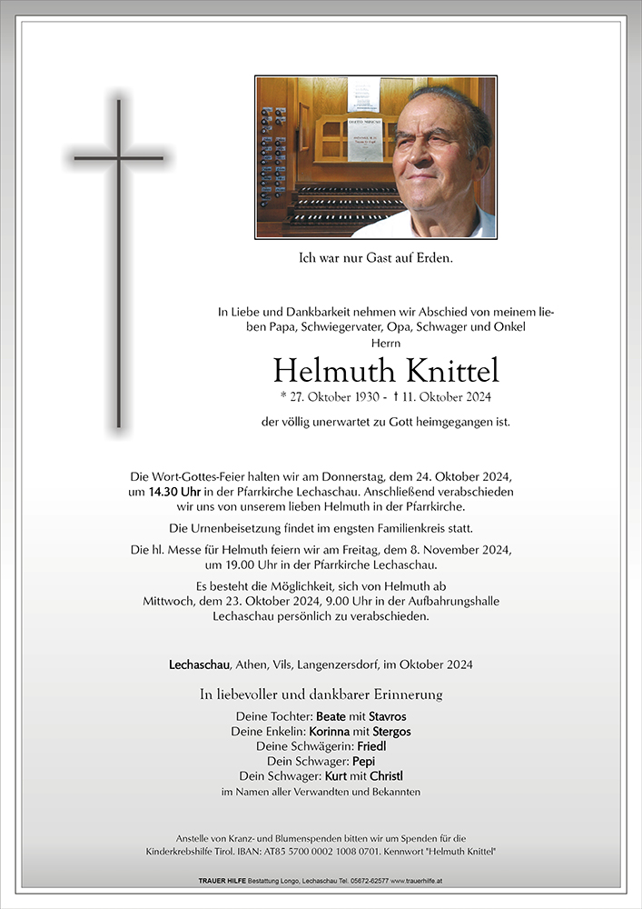 Nun wird es wohl öfters still sein in der Nachbarschaft, Helmuth ein guter Nachbar ist nicht mehr.