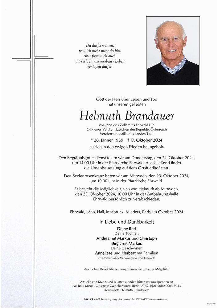 Helmuth ist heimgegangen, wohlverdient hat er sich in die Obhut Gottes begeben, der ihn mit Freude und weit geöffneten Armen empfangen haben dürfte.