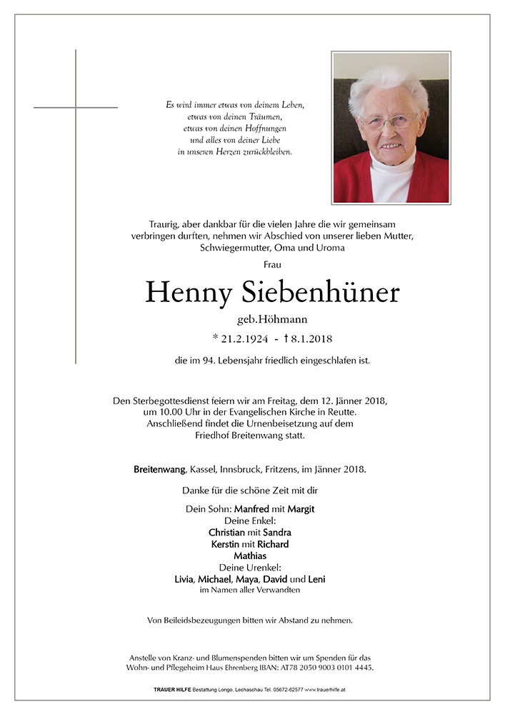 Unsere Aufrichtige Anteilnahme zum Heimgang Euer geliebten Mutter