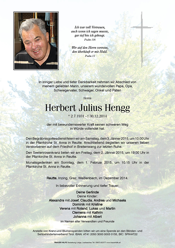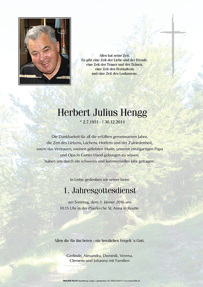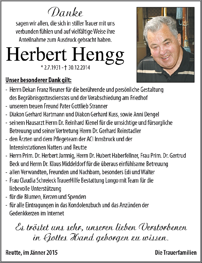 Wir wollen unser aufrichtiges Mitgefühl Ihnen, Frau Hengg, sowie der ganzen Familie zum Ausdruck bringen. Die leider nur kurze - Jahre zurück liegende - Tenniszeit mit Herbert bleibt mir in guter Erinnerung. Er war ein feiner Sportpartner. und Kollege.