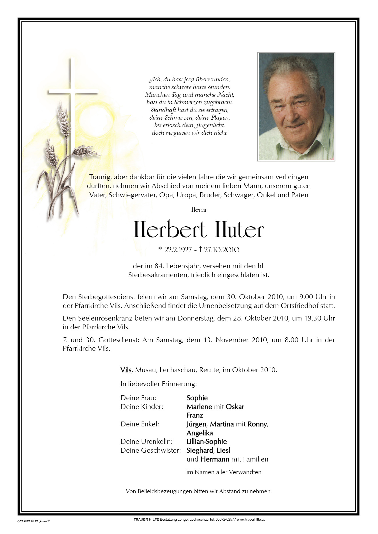13.12.1901 27.10.2010 Vils Herbert Huter Action Parte Sterbebild Gedenkkerzen Kondolenzen Parte Sterbebild Gedenkkerzen Kondolenzen Parte herunterladen Sterbebild herunterladen Gedenkkerzen für Herbert Huter 7 Einträge Kerze anzünden a Lichtle für di a weihnachtslichtle Denk an Dich ruhe in Frieden ruhe in Frieden Denk an dich ruhe in Frieden Ruhe in Frieden Ruhe in Gottes Hand Ihre Gedenkkerze fürHerbert Huter Ihr Name* Farbe auswählen Ihre Nachricht oder Name* E-Mail-Adresse* Mit dem Klicken auf "Kerze anzünden" erklären Sie sich mit unseren Datenschutzbestimmungen einverstanden. Kondolenzbuch für Herbert Huter 0 Einträge Kondolenz verfassen Ihr Abschiedsgruß an Herbert Huter Ihr Name* E-Mail-Adresse* Ihre Nachricht* Mit dem Klicken auf "Gruß absenden" erklären Sie sich mit unseren Datenschutzbestimmungen einverstanden.