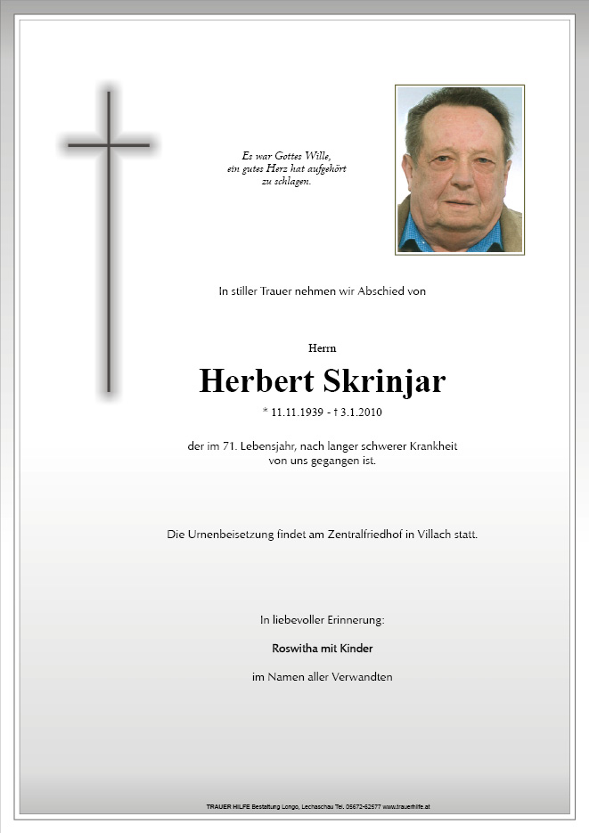 13.12.1901 03.01.2010 Reutte Herbert Skrinjar Action Parte Gedenkkerzen Kondolenzen Parte Gedenkkerzen Kondolenzen Parte herunterladen Gedenkkerzen für Herbert Skrinjar 0 Einträge Kerze anzünden Ihre Gedenkkerze fürHerbert Skrinjar Ihr Name* Farbe auswählen Ihre Nachricht oder Name* E-Mail-Adresse* Mit dem Klicken auf "Kerze anzünden" erklären Sie sich mit unseren Datenschutzbestimmungen einverstanden. Kondolenzbuch für Herbert Skrinjar 0 Einträge Kondolenz verfassen Ihr Abschiedsgruß an Herbert Skrinjar Ihr Name* E-Mail-Adresse* Ihre Nachricht* Mit dem Klicken auf "Gruß absenden" erklären Sie sich mit unseren Datenschutzbestimmungen einverstanden.