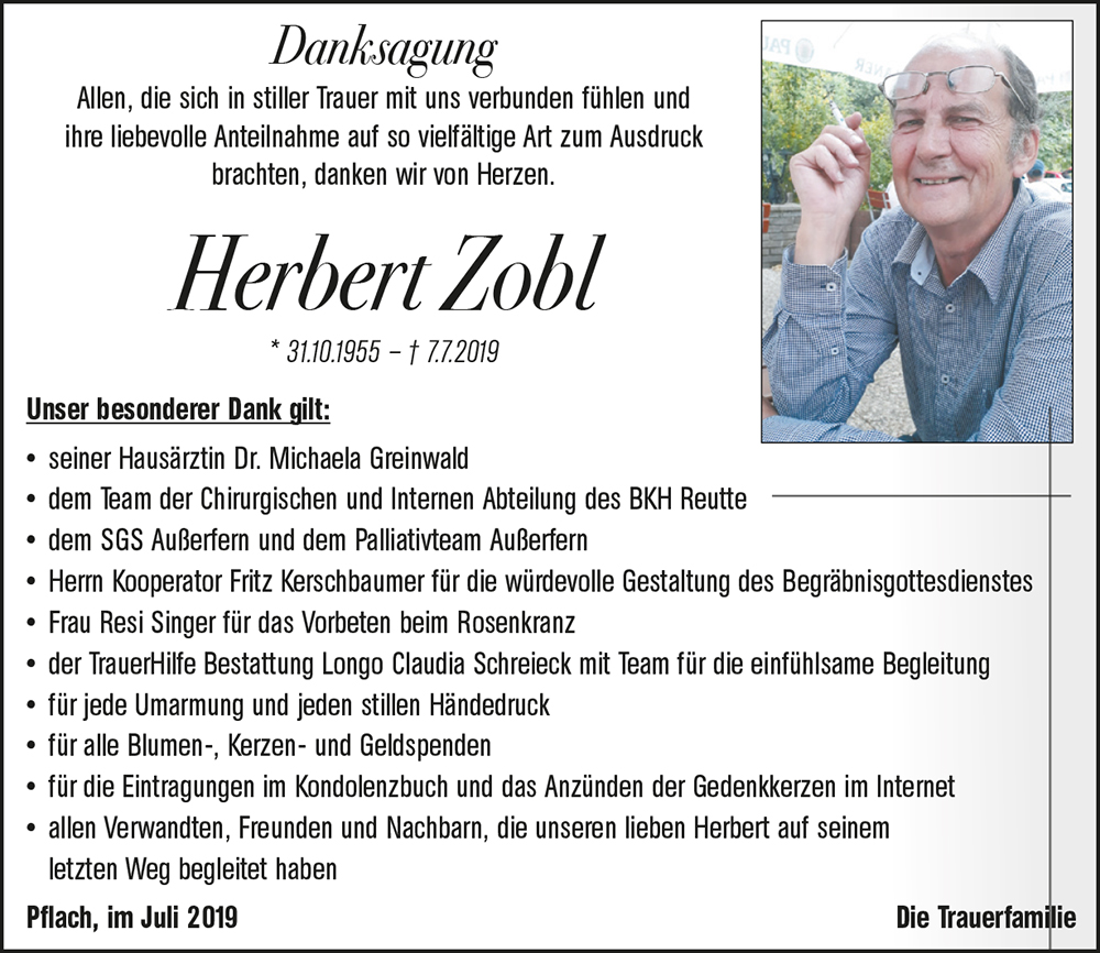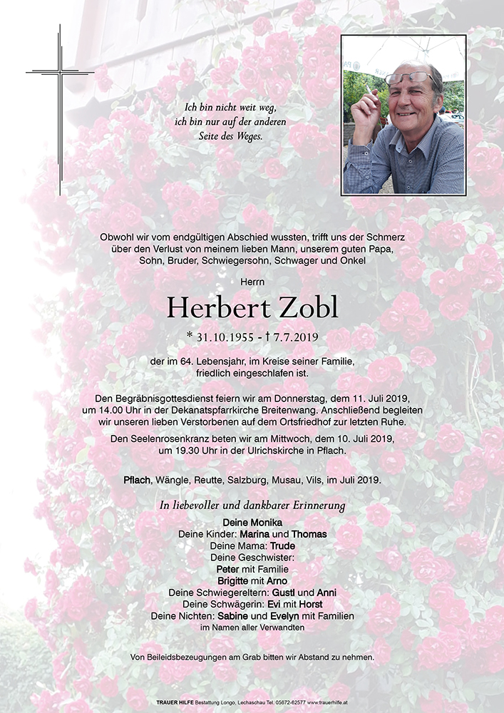 Kondolenzbuch für Herbert Zobl