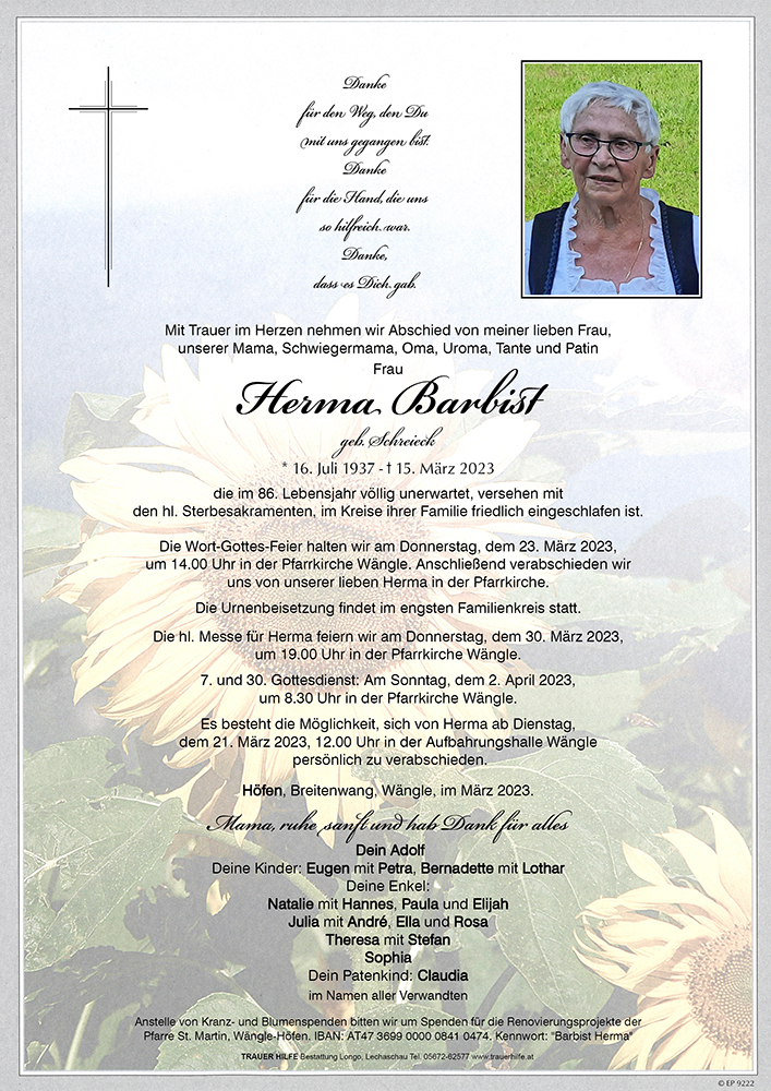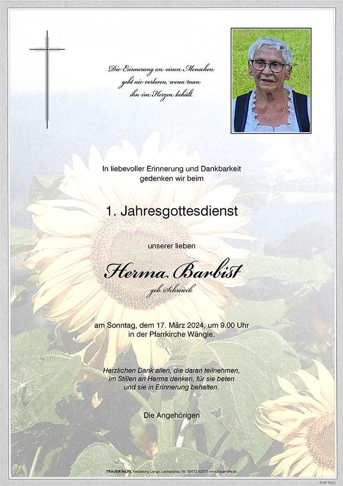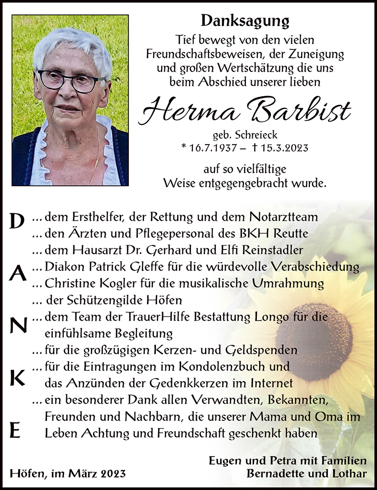 Kondolenzbuch für Herma Barbist