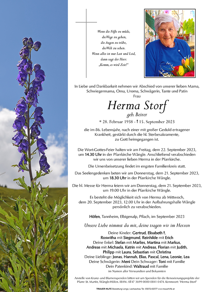 Kondolenzbuch für Herma Storf