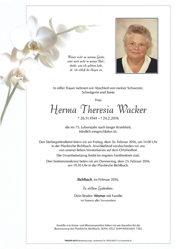 Kondolenzbuch für Herma Theresia Wacker