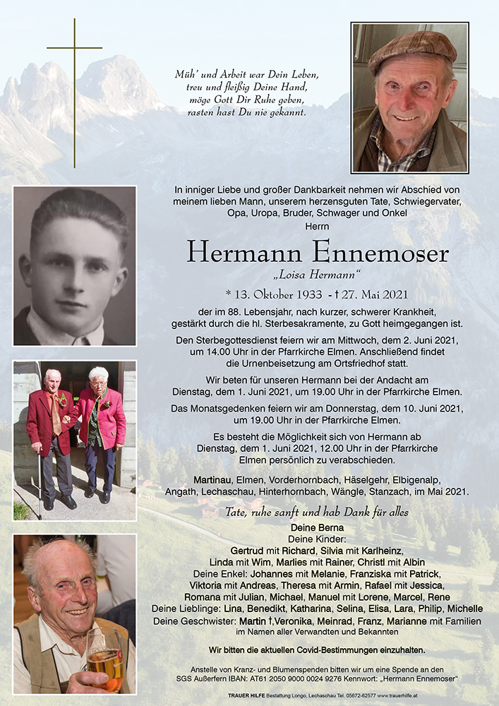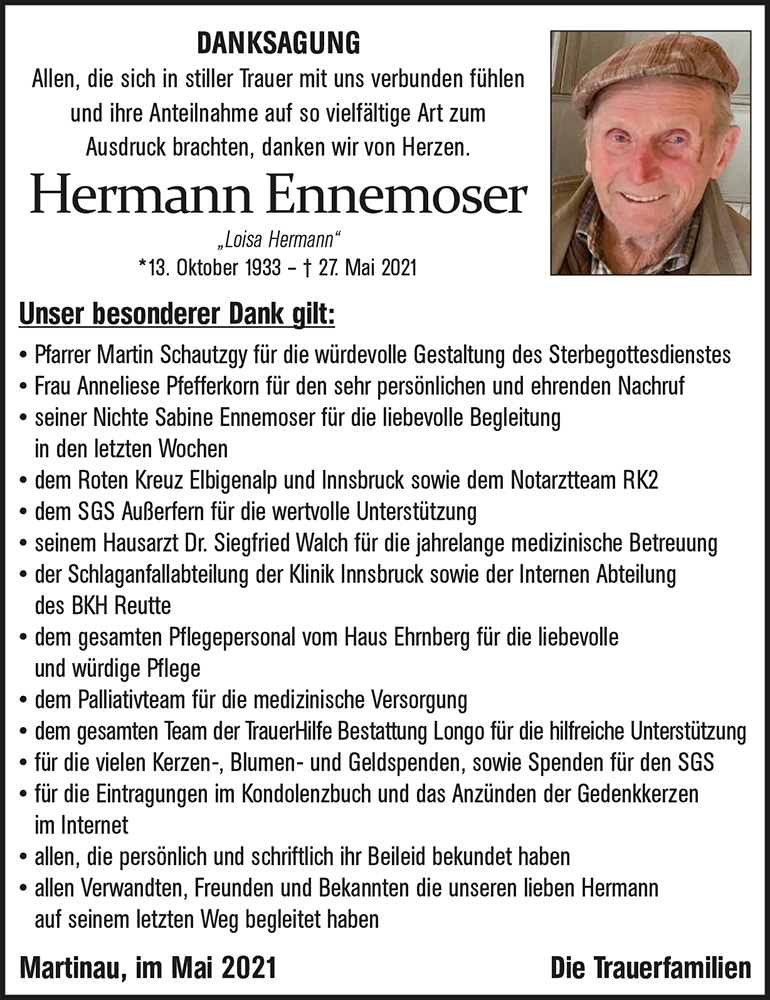 Kondolenzbuch für Hermann Ennemoser