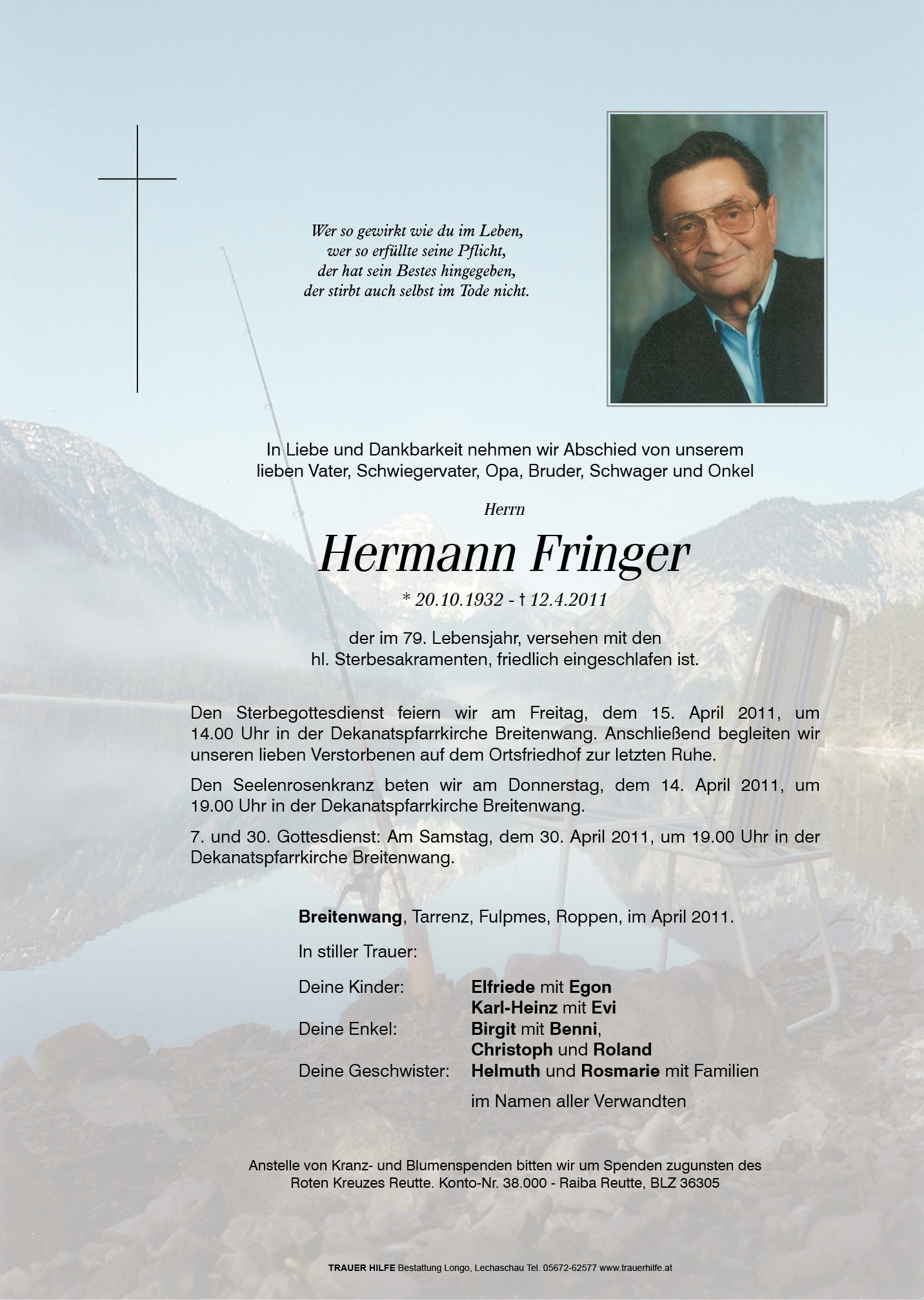 13.12.1901 12.04.2011 Breitenwang Hermann Fringer Action Parte Sterbebild Gedenkkerzen Kondolenzen Danksagung Parte Sterbebild Gedenkkerzen Kondolenzen Danksagung Parte herunterladen Sterbebild herunterladen Gedenkkerzen für Hermann Fringer 3 Einträge Kerze anzünden Ein Licht für die Ewigkeit! Wolf Fritz Fam. Schmid E. Ihre Gedenkkerze fürHermann Fringer Ihr Name* Farbe auswählen Ihre Nachricht oder Name* E-Mail-Adresse* Mit dem Klicken auf "Kerze anzünden" erklären Sie sich mit unseren Datenschutzbestimmungen einverstanden. Kondolenzbuch für Hermann Fringer 0 Einträge Kondolenz verfassen Ihr Abschiedsgruß an Hermann Fringer Ihr Name* E-Mail-Adresse* Ihre Nachricht* Mit dem Klicken auf "Gruß absenden" erklären Sie sich mit unseren Datenschutzbestimmungen einverstanden. Danksagung herunterladen