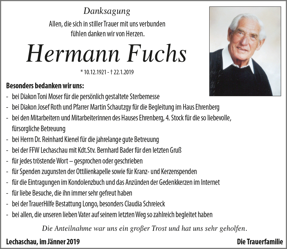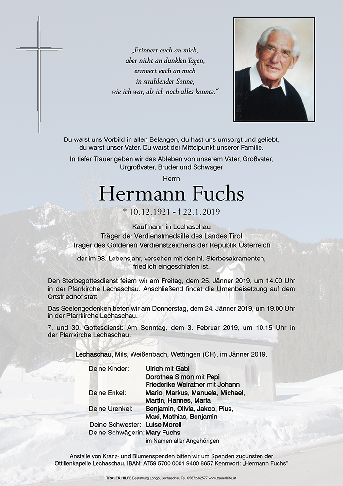 Kondolenzbuch für Hermann Fuchs