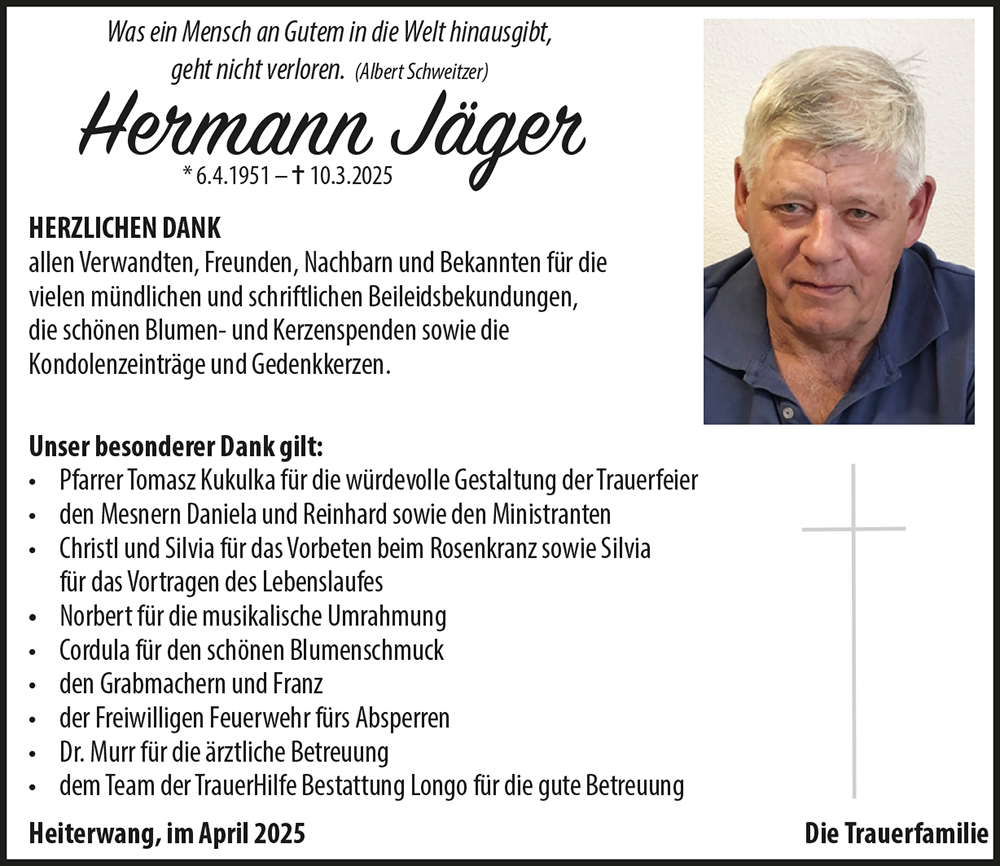 Euch wünsche ich in eurer Trauer um Hermann viel Kraft und Zusammenhalt für jetzt und die kommende Zeit.