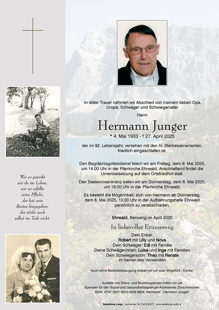 Kondolenzbuch für Hermann Junger