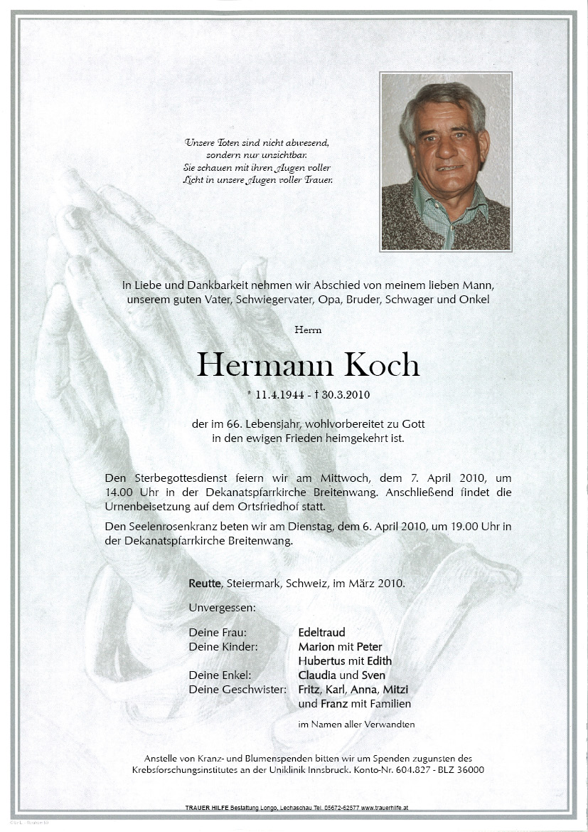 13.12.1901 30.03.2010 Reutte Hermann Koch Action Parte Sterbebild Gedenkkerzen Kondolenzen Parte Sterbebild Gedenkkerzen Kondolenzen Parte herunterladen Sterbebild herunterladen Gedenkkerzen für Hermann Koch 3 Einträge Kerze anzünden Herr gib ihm die ewige Ruhe. . . Wir denken oft an Dich In lieber Erinnerung Ihre Gedenkkerze fürHermann Koch Ihr Name* Farbe auswählen Ihre Nachricht oder Name* E-Mail-Adresse* Mit dem Klicken auf "Kerze anzünden" erklären Sie sich mit unseren Datenschutzbestimmungen einverstanden. Kondolenzbuch für Hermann Koch 0 Einträge Kondolenz verfassen Ihr Abschiedsgruß an Hermann Koch Ihr Name* E-Mail-Adresse* Ihre Nachricht* Mit dem Klicken auf "Gruß absenden" erklären Sie sich mit unseren Datenschutzbestimmungen einverstanden.