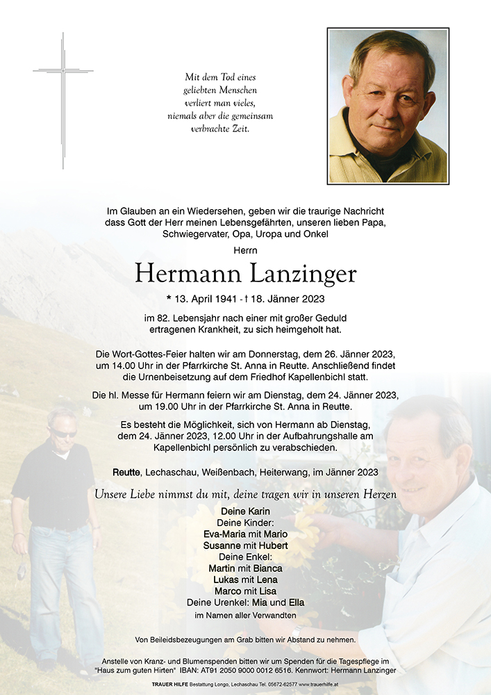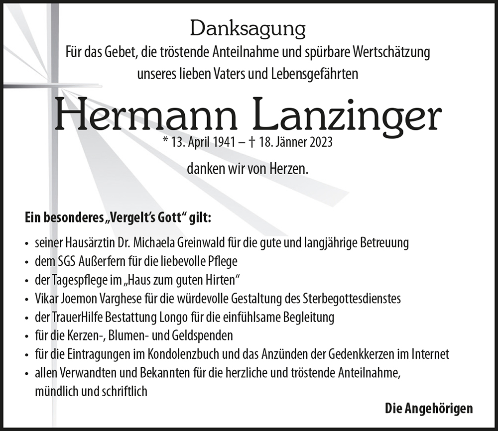 Kondolenzbuch für Hermann Lanzinger