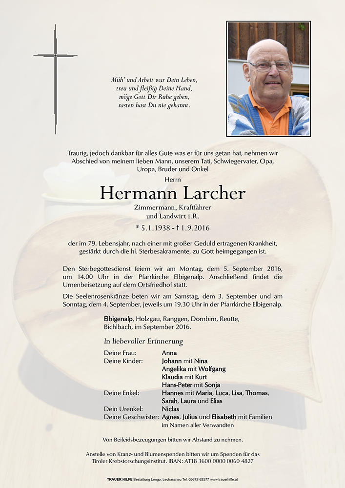 Kondolenzbuch für Hermann Larcher