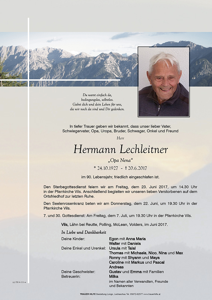 Kondolenzbuch für Hermann Lechleitner