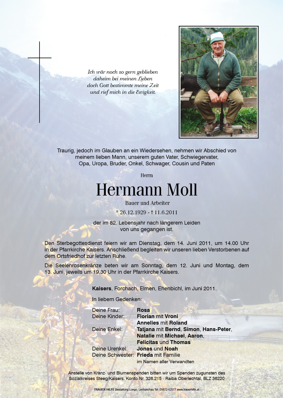 13.12.1901 11.06.2011 Kaisers Hermann Moll Action Parte Sterbebild Gedenkkerzen Kondolenzen Danksagung Parte Sterbebild Gedenkkerzen Kondolenzen Danksagung Parte herunterladen Sterbebild herunterladen Gedenkkerzen für Hermann Moll 99 Einträge Kerze anzünden Tatjana mit Jonas, Noah und Adam Nathalie mit Fam N, M, L, L Nathalie mit Familie Für unseren lieben Opa und Uropa Deine Enkel und Urenkel Deine Enkel mit Urenkel Für Opa Tatjana mit Jonas, Noah und Adam Nathalie mit Fam. Geburtstagslicht von uns Allen! ! Weihnachtskerzle von uns allen Viel Licht für dich! Deine Familie Tatjana mit Jonas, Noah und Adam Deine Enkel mit Urenkel Von uns Allen ein Lichtlein! ! Von deiner ganzen Familie viel Licht Deine Rosa Florian und Vroni mit Familie Tatjana mit Familie Annelies mit Simon, Aaron und Felicitas A liachtle für di. . . . deine Enkel Viel Licht für dich! Deine Familie Im ❤ deine Familie Deine Annalies mit Kinder I denk an di Opa Viel Licht für dich deine Tatjana Deine Enkel mit Urenkel Geburtstagslicht Tatjana mit Jungs Gedenkkerzle von uns allen Viel Licht für di Opa. . . . i denk an di Tatjana mit Jonas, Noah und Adam Tatjana mit Jonas, Noah und Adam Deine Enkel mit Urenkel I denk an di Jonas, Noah, Leon, Adam, Brayn Natalie und Michael mit Leon In lieber Erinnerung Tatjana mit Familie Deine Tatjana mit Kinder Wir denken an dich deine Enkel Osterkerze für insern Opa Schau auf uns. . . Opa! Deine Enkel mit Urenkel Viel Licht für dich Opa Tatjana mit Jonas, Noah und Adam Weihnachtsliachtle für di Opa A Liachtle für di OPA Sei der Schutzengel deiner Urenkel Jonas, Noah, Leon, Adam, Brayn Für di Opa ein Licht Tatjana i denk an di Tatjana mit Söhne Für di Opa ein Licht Tatjana mit Jonas, Noah und Adam Tatjana mit Familie Ein Osterlicht für dich! ! Deine Tatjana Annelies Jonas, Noah, Leon, Adam, Brayn Unvergessen Tatjana Weihnachtsliachtle für die A Liachtle für mein Opa Rosa Felicitas Annelies A Liachtle für di Opa! Für mein Opa ein Licht Papa du fehlst mir Papa du fehlst mir Du bist bei uns lieber Opa A Liacht für di, Opa! ! Annelies Rosa Moll Für unseren Opa ein Licht Annelies und Roland Aaron , Simon u. Feli Rosa Moll Tatjana mit Familie Annelies Moll Jonas, Noah und Adam Tatjana und Bernd Annelies Annelies Rosa Moll Aaron , Simon u. Feli Annelies Moll Annelies Florian und Vroni Jonas, Noah und Adam Tatjana und Bernd Annelies Annelies und Roland Annelies und Roland Annelies und Roland Jonas, Noah und Adam Fam. Maldoner Tatjana und Bernd Jonas und Noah Reinhard Lechleitner Zum Gedenken Ihre Gedenkkerze fürHermann Moll Ihr Name* Farbe auswählen Ihre Nachricht oder Name* E-Mail-Adresse* Mit dem Klicken auf "Kerze anzünden" erklären Sie sich mit unseren Datenschutzbestimmungen einverstanden. Kondolenzbuch für Hermann Moll 0 Einträge Kondolenz verfassen Ihr Abschiedsgruß an Hermann Moll Ihr Name* E-Mail-Adresse* Ihre Nachricht* Mit dem Klicken auf "Gruß absenden" erklären Sie sich mit unseren Datenschutzbestimmungen einverstanden. Danksagung herunterladen