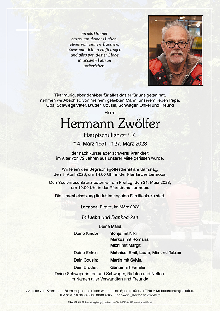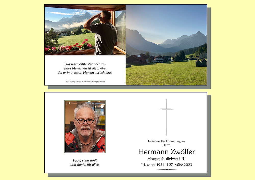 Zum Tod eures lieben Hermann,