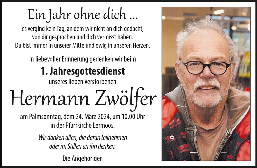 Kondolenzbuch für Hermann Zwölfer