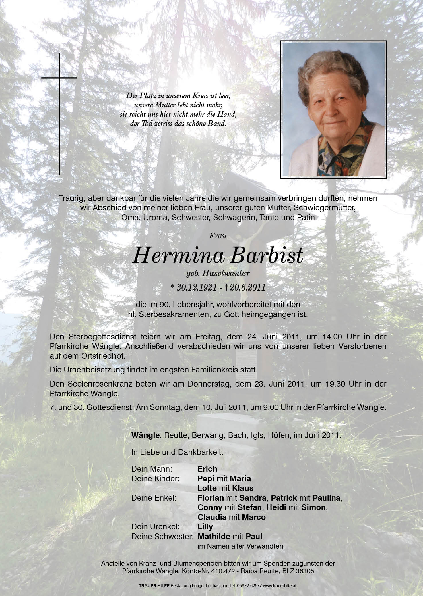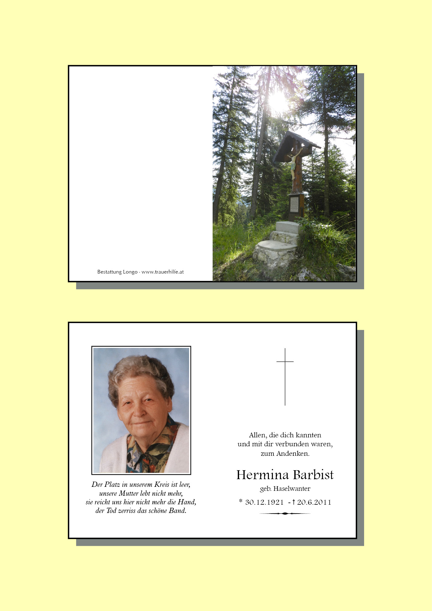 13.12.1901 20.06.2011 Wängle Hermina Barbist Action Parte Sterbebild Gedenkkerzen Kondolenzen Parte Sterbebild Gedenkkerzen Kondolenzen Parte herunterladen Sterbebild herunterladen Gedenkkerzen für Hermina Barbist 2 Einträge Kerze anzünden Ein Licht für die Ewigkeit! Maria Ihre Gedenkkerze fürHermina Barbist Ihr Name* Farbe auswählen Ihre Nachricht oder Name* E-Mail-Adresse* Mit dem Klicken auf "Kerze anzünden" erklären Sie sich mit unseren Datenschutzbestimmungen einverstanden. Kondolenzbuch für Hermina Barbist 0 Einträge Kondolenz verfassen Ihr Abschiedsgruß an Hermina Barbist Ihr Name* E-Mail-Adresse* Ihre Nachricht* Mit dem Klicken auf "Gruß absenden" erklären Sie sich mit unseren Datenschutzbestimmungen einverstanden.