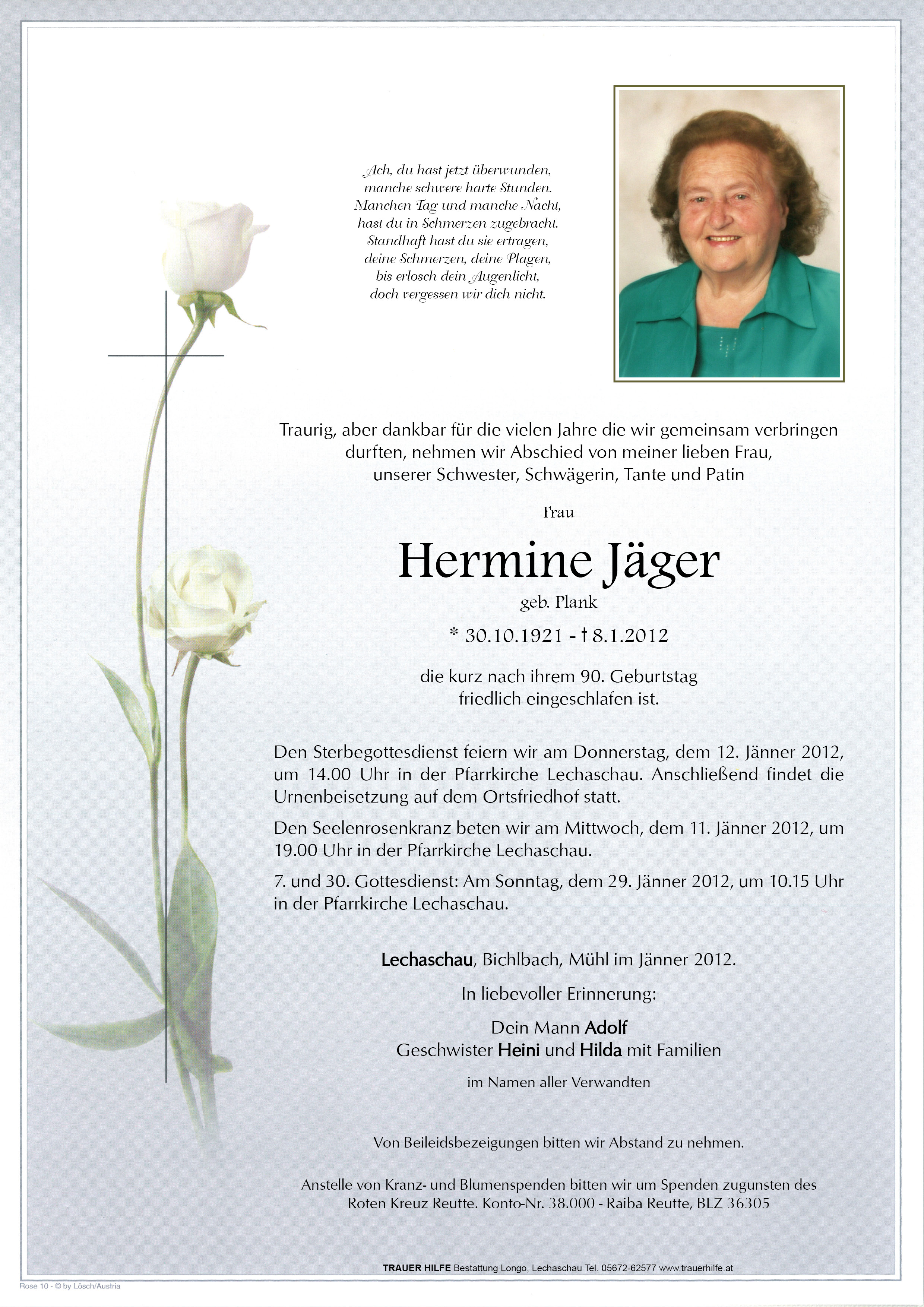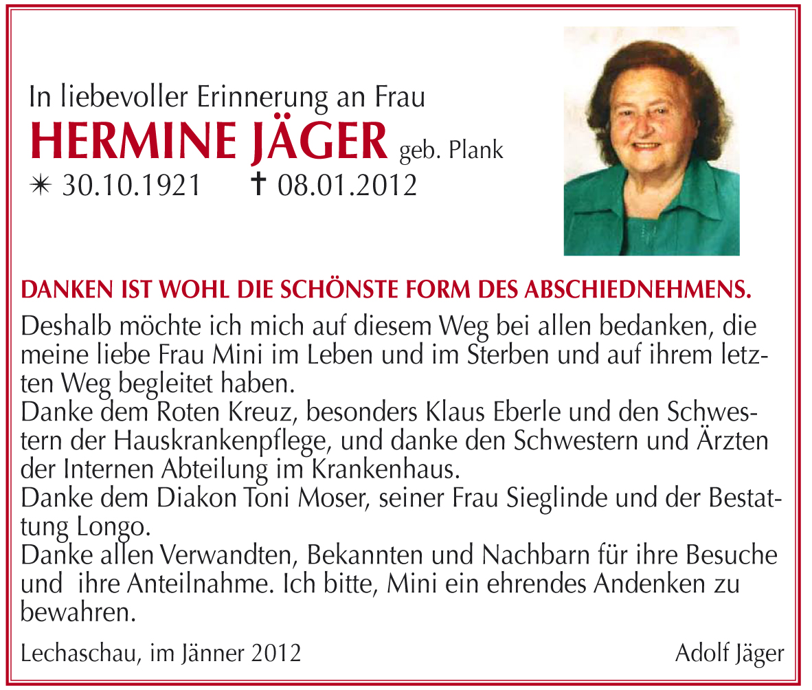 Kondolenzbuch für Hermine Jäger