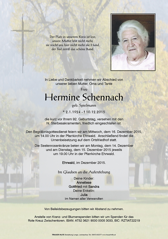 Kondolenzbuch für Hermine Schennach