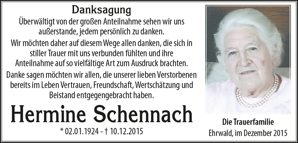 Hermine ist eine liebe Gefährtin meiner Jugendjahre gewesen. Sie durfte eine sehr lange bei Ihren Lieben bleiben. Dafür war sie und seid Ihr dem Herrn sicher sehr dankbar. Möge Euch diese Dankbarkeit, die Erinnerung an all das gemeinsam Erlebte und der Glaube an die Auferstehung trösten und Kraft geben für diese schwere Zeit!