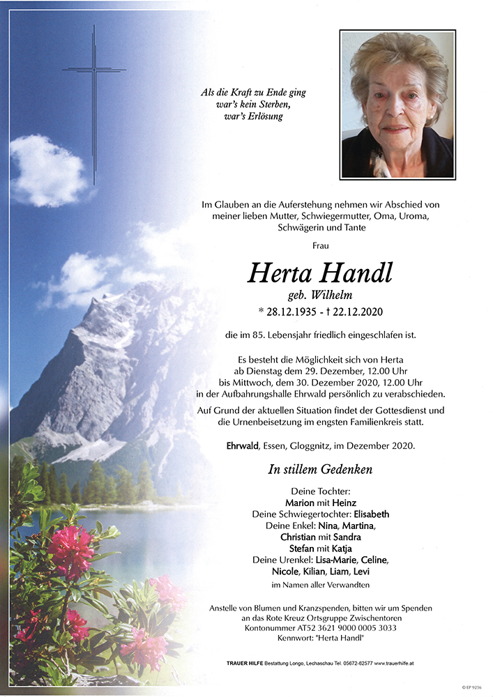 Kondolenzbuch für Herta Handl