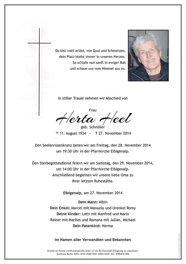 Kondolenzbuch für Herta Heel