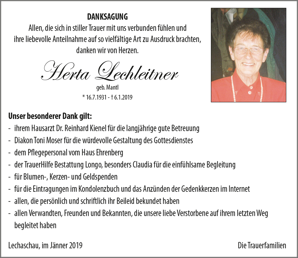 Kondolenzbuch für Herta Lechleitner