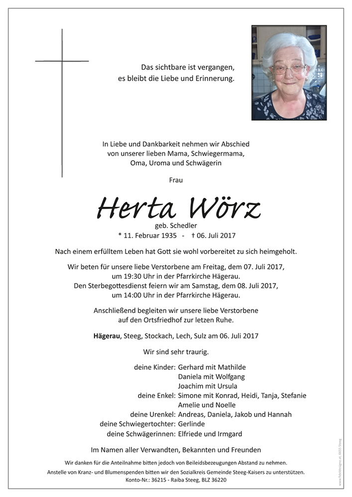 Aufrichtige Anteilnahme zumTod eurer Mutter entbieten Harald, Rosmarie und Bianca Hammerle