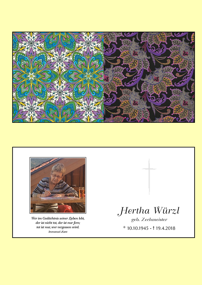 10.10.1945 19.04.2018 Ehrwald Hertha Würzl Action Parte Sterbebild Gedenkkerzen Kondolenzen Parte Sterbebild Gedenkkerzen Kondolenzen Parte herunterladen Sterbebild herunterladen Gedenkkerzen für Hertha Würzl 22 Einträge Kerze anzünden In liebe trixi In liebe trixi In liebe trixi In liebe trixi In liebe trixi in liebe Trixi in liebe Trixi Hospizteam am Haus Ehrenberg In stillem Gedenken Fam. Lolly und Manfred Saurer R. I. P. Doris und Roman Familie Kerber Morandell Hermi u. Chris Rath Das Team des SGS Außerfern Liebe, Licht und Friede! Famile Erich Papp Ruhe in Frieden Birgit u. Wolfgang Strauss Palliativteam Außerfern Claudia Schreieck TrauerHilfe Bestattung Longo Ihre Gedenkkerze fürHertha Würzl Ihr Name* Farbe auswählen Ihre Nachricht oder Name* E-Mail-Adresse* Mit dem Klicken auf "Kerze anzünden" erklären Sie sich mit unseren Datenschutzbestimmungen einverstanden. Kondolenzbuch für Hertha Würzl 1 Eintrag Kondolenz verfassen Ich bin sehr traurig dass wir uns nicht persönlich verabschieden konnten. Du wirst mir fehlen. Ich denke oft an unsere gemeinsame schöne Zeit zurück. In Liebe deine Freundin Trixi Trixi 18.05.2018 um 08:44 Uhr Ihr Abschiedsgruß an Hertha Würzl Ihr Name* E-Mail-Adresse* Ihre Nachricht* Mit dem Klicken auf "Gruß absenden" erklären Sie sich mit unseren Datenschutzbestimmungen einverstanden.