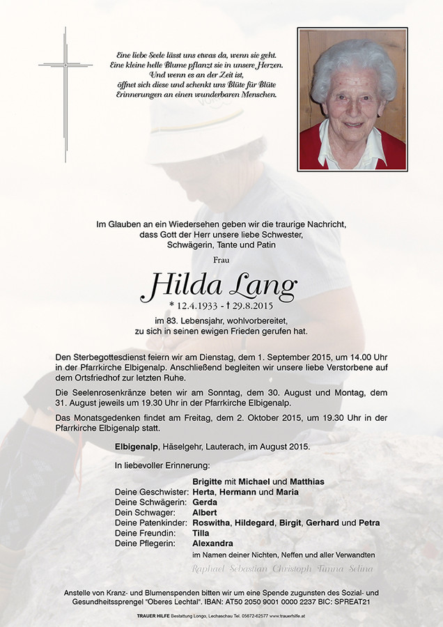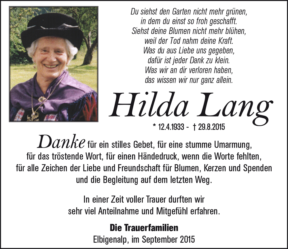 Kondolenzbuch für Hilda Lang