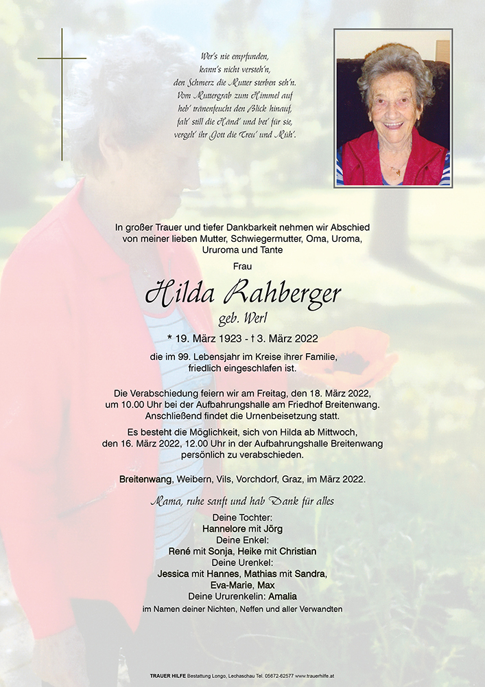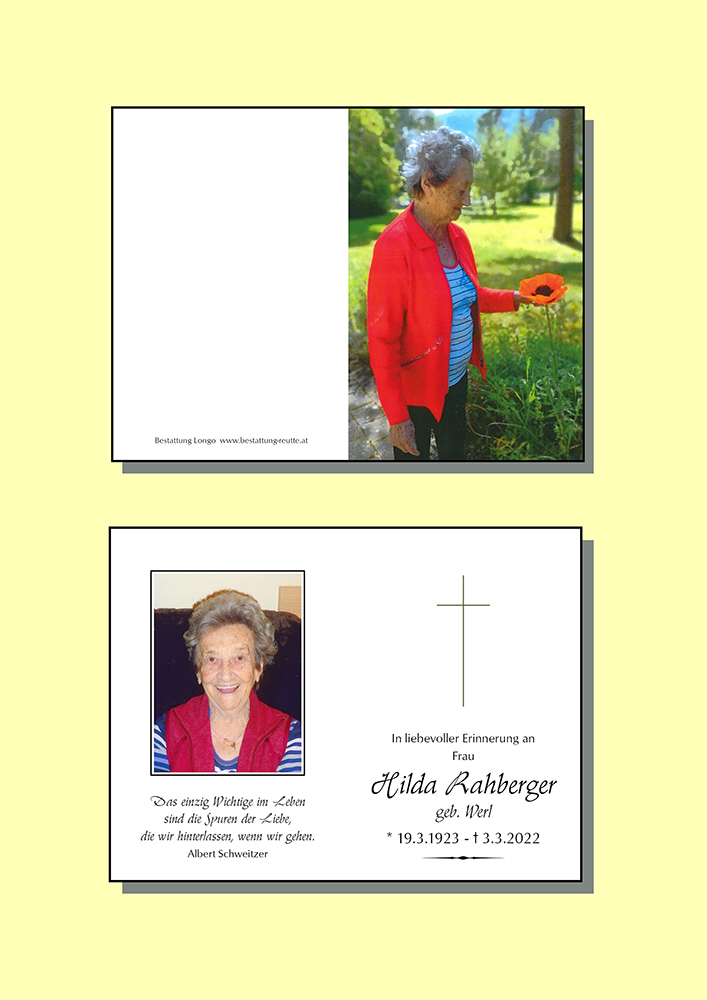 Kondolenzbuch für Hilda Rahberger