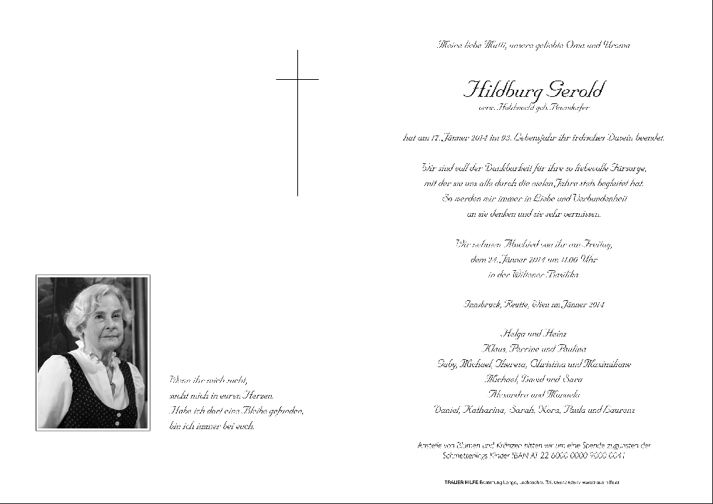 Eure liebe Verstorbene durfte ein hohes Alter erreichen, für die Angehörigen kommt