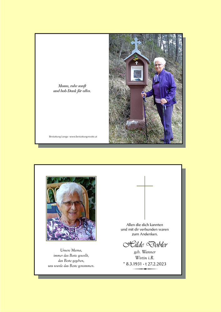 Trauert gemeinsam und erinnert euch an die schönsten Stunden in denen ihr mit eurer Mutter, Oma und Uroma zusammen ward, denn in eurer Erinnerungen bleibt ihr Mutter, Oma u. Uroma verbunden.