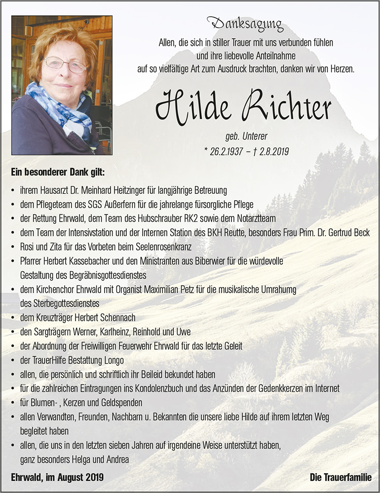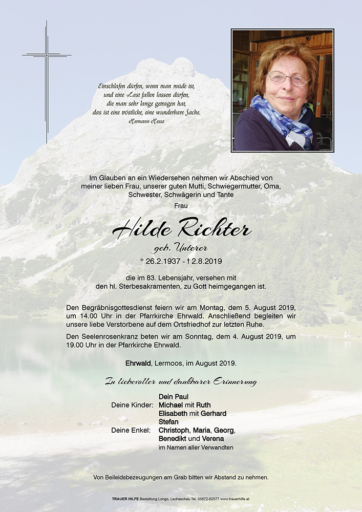 Kondolenzbuch für Hilde Richter