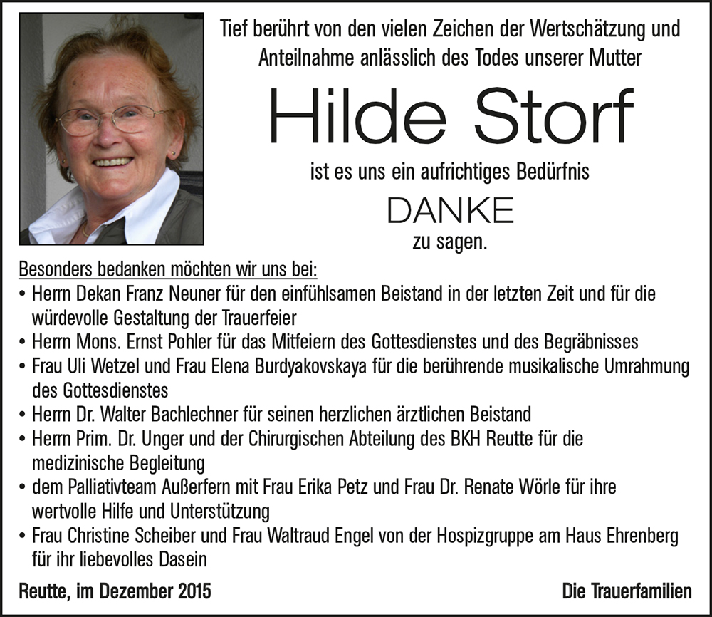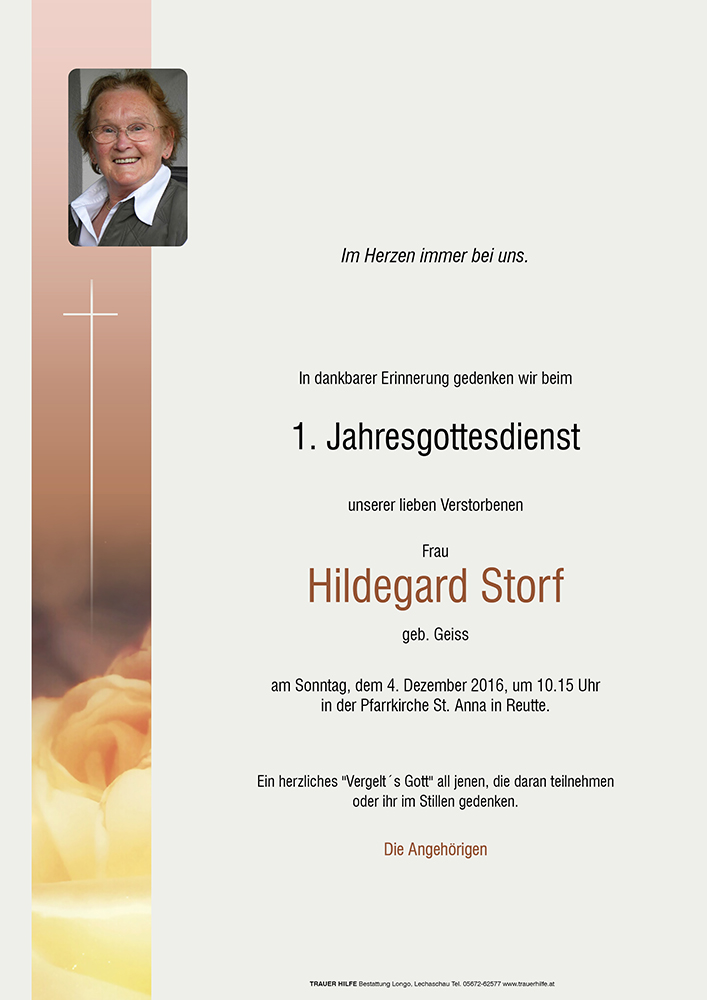 Kondolenzbuch für Hilde Storf