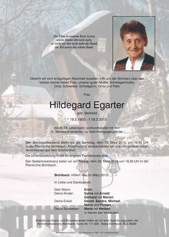 Kondolenzbuch für Hildegard Egarter