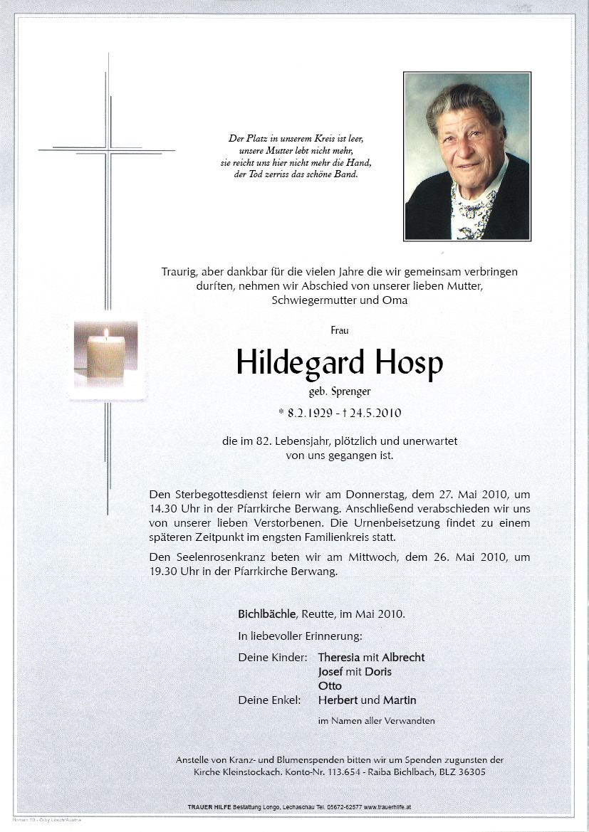 13.12.1901 24.05.2010 Bichlbächle Hildegard Hosp Action Parte Sterbebild Gedenkkerzen Kondolenzen Danksagung Parte Sterbebild Gedenkkerzen Kondolenzen Danksagung Parte herunterladen Sterbebild herunterladen Gedenkkerzen für Hildegard Hosp 9 Einträge Kerze anzünden Ruhe in Frieden Hosp Josef hosp josef hosp josef hosp josef Hosp Josef Oliver, Sandra, Stella & Jakob hosp Josef Hosp Josef Ihre Gedenkkerze fürHildegard Hosp Ihr Name* Farbe auswählen Ihre Nachricht oder Name* E-Mail-Adresse* Mit dem Klicken auf "Kerze anzünden" erklären Sie sich mit unseren Datenschutzbestimmungen einverstanden. Kondolenzbuch für Hildegard Hosp 0 Einträge Kondolenz verfassen Ihr Abschiedsgruß an Hildegard Hosp Ihr Name* E-Mail-Adresse* Ihre Nachricht* Mit dem Klicken auf "Gruß absenden" erklären Sie sich mit unseren Datenschutzbestimmungen einverstanden. Danksagung herunterladen