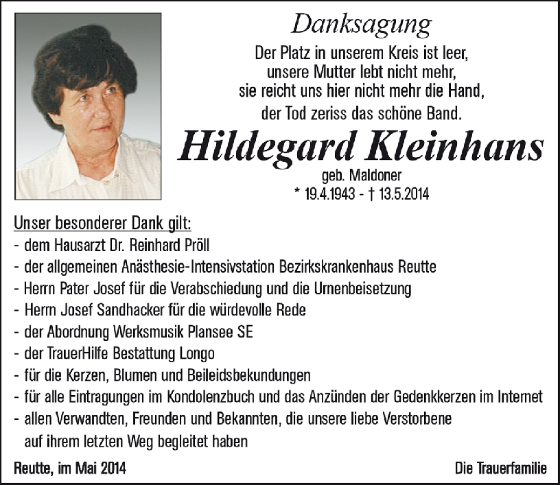Aufrichtige Anteilnahme entbietet der Pensionistenverband Ortsgruppe Reutte