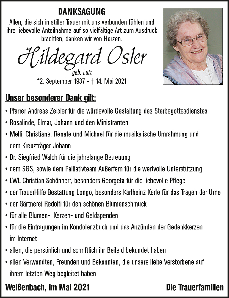 Alles hat seine Zeit, es gibt eine Zeit der Freude, eine Zeit der Stille, eine Zeit des Schmerzes, der Trauer und eine Zeit der dankbaren Erinnerung.