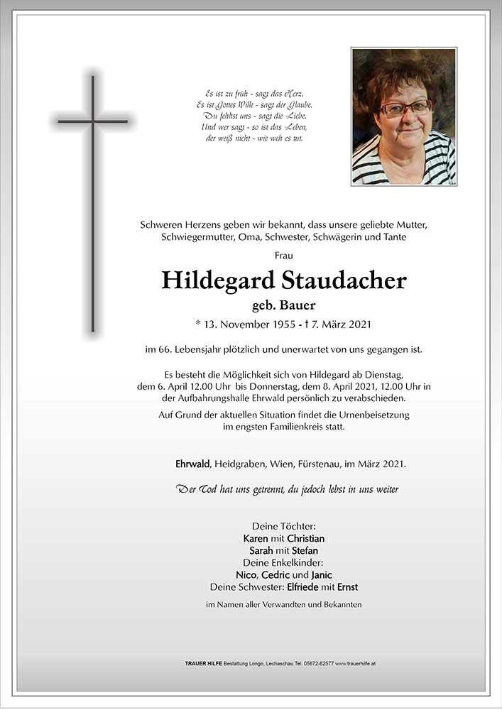 Kondolenzbuch für Hildegard Staudacher