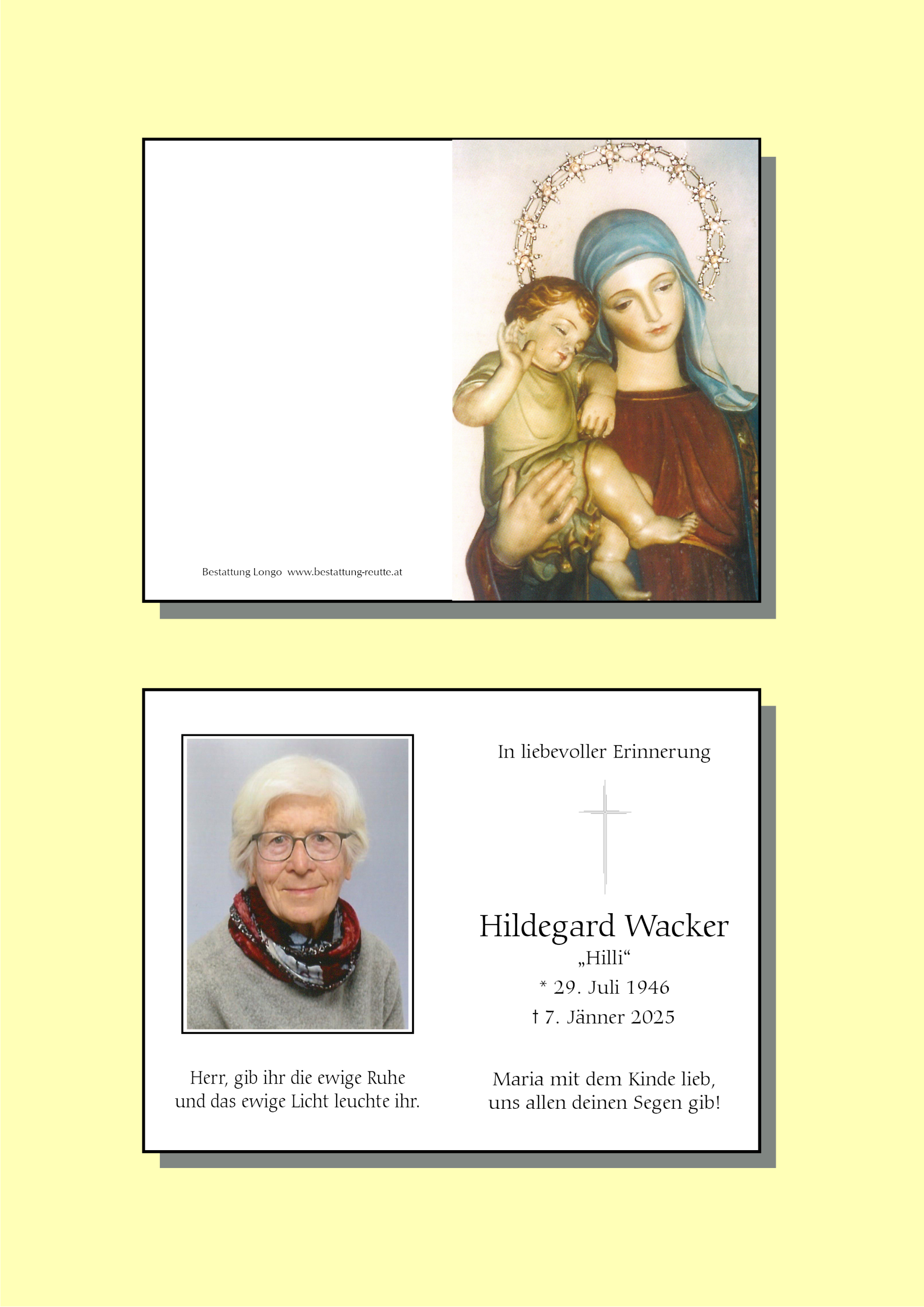 Liebe Trauerfamilien Wacker und Wolf,