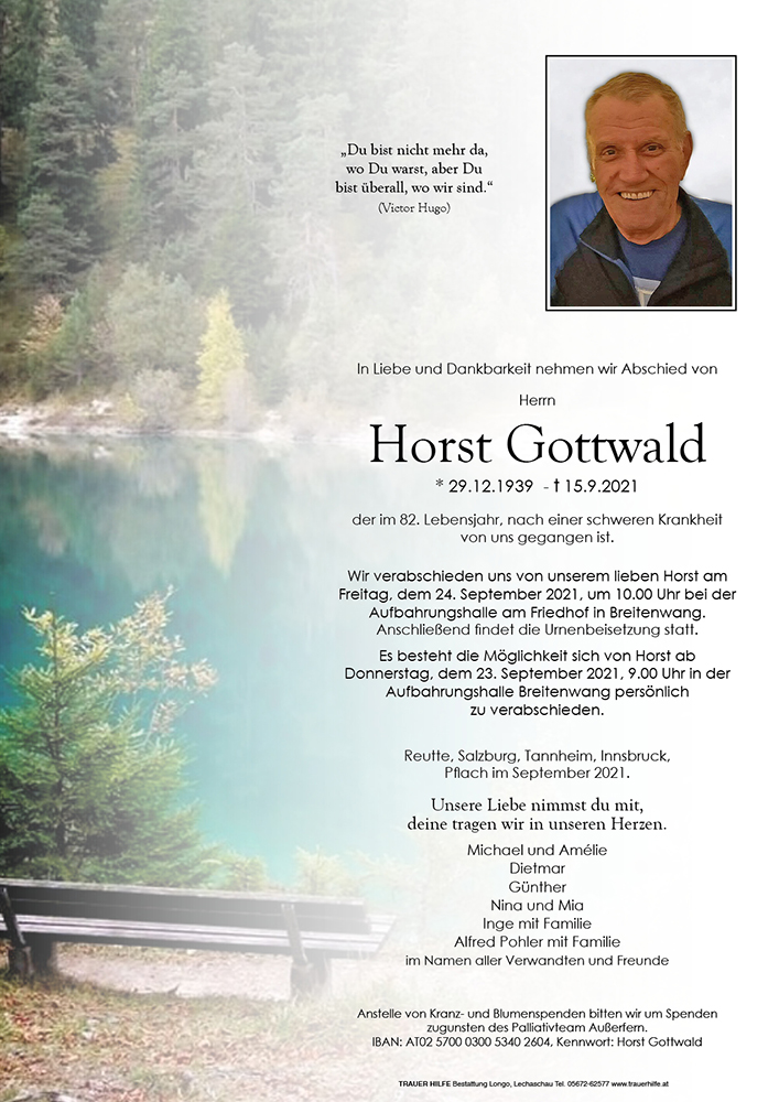 wünsche Euch allen Kraft, Geduld und Hoffnung für die Tage, die anders sind als sie waren. Horst verlässt uns, bleibt uns aber in bester Erinnerung stets präsent.
