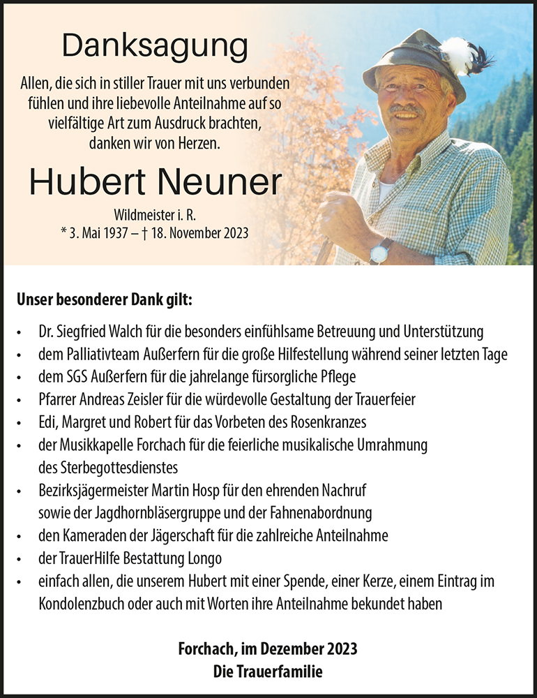 Zum Verlust von Eurem lieben Hubert möchten wir Euch unser aufrichtiges Beileid und tiefes Mitgefühl aussprechen.